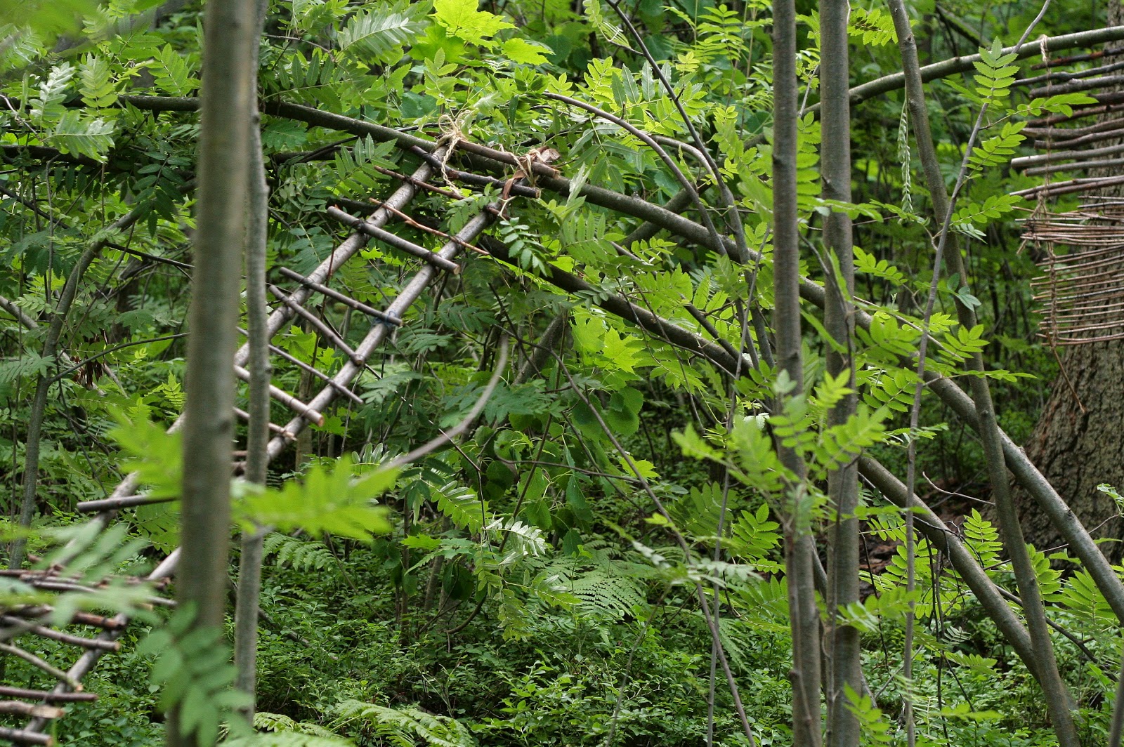 Myös Käpykylä oli sellainen. Rakensimme pienoismaailman paviljongin takaiseen metsään ja opettelimme tapoja ja solmuja, joilla sitoa keppeja ja pajunoksia yhteen. Rautatiet ja polut yhdistivät talot ja mökit toisiinsa. Metsässä työskentely on rauhoittavaa ja luovaa, minkä saimme taas huomata. huouomata.